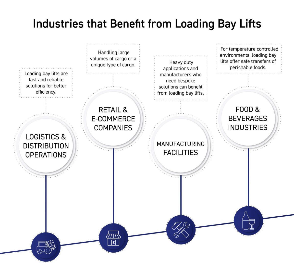 Many modern loading bay lifts are often integrated with other systems, such as dock levellers and conveyors to create efficient and seamless workflows. Some of the industries that would use a loading bay lift include: